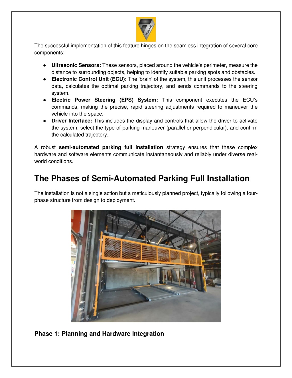 Navigating the Future of Urban Mobility: A Deep Dive into Semi-Automated Parking Full Installation The increasing density of modern cities and the shrinking space available for parking have pushed vehicle manufacturers and urban planners toward sophisticated technological solutions. Among the most popular innovations is the semi-automated parking system—a critical component in enhancing driver convenience and safety. While many drivers interact with the finished product, few understand the rigorous, multi-stage process involved in a semi-automated parking full installation. This end-to-end endeavor requires precision engineering, complex software integration, and meticulous testing to ensure flawless operation. Understanding Semi-Automated Systems A semi-automated parking system is distinct from its fully autonomous counterpart. It is designed to assist the driver by controlling steering, and sometimes acceleration and braking, while the driver remains in control and monitors the process. This symbiotic relationship between human and machine is the foundation of the technology that drives our automated parking company.