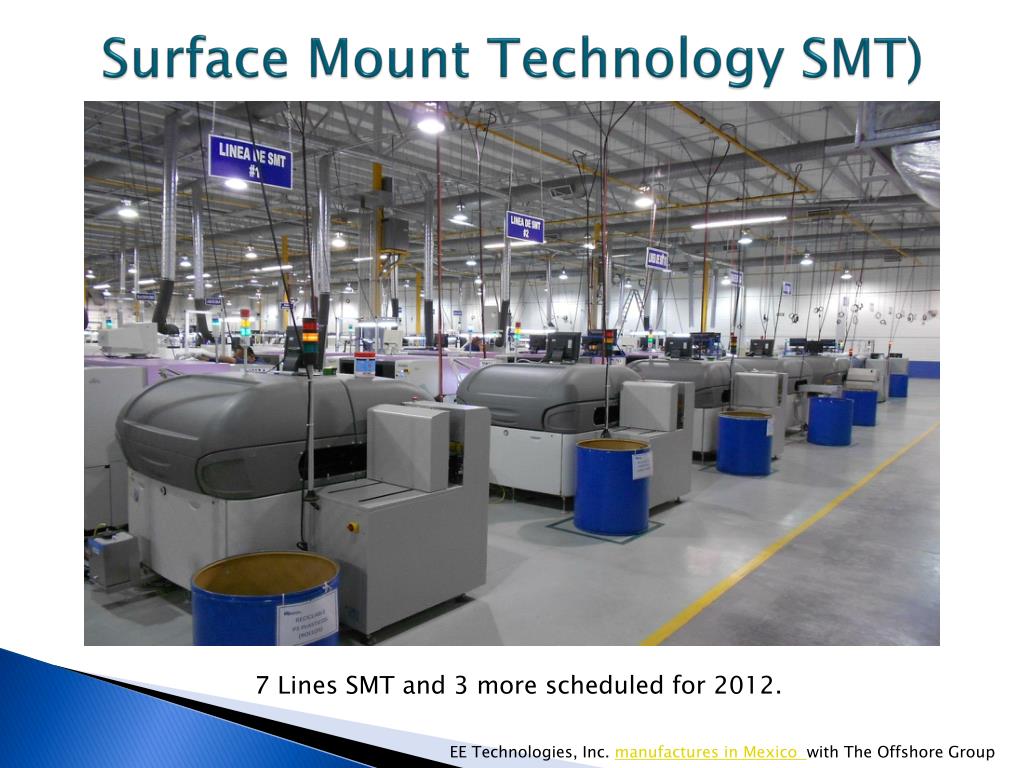 Surface Mount Technology SMT) 7 Lines SMT and 3 more scheduled for 2012. EE Technologies, Inc. manufactures in Mexicowith The Offshore Group