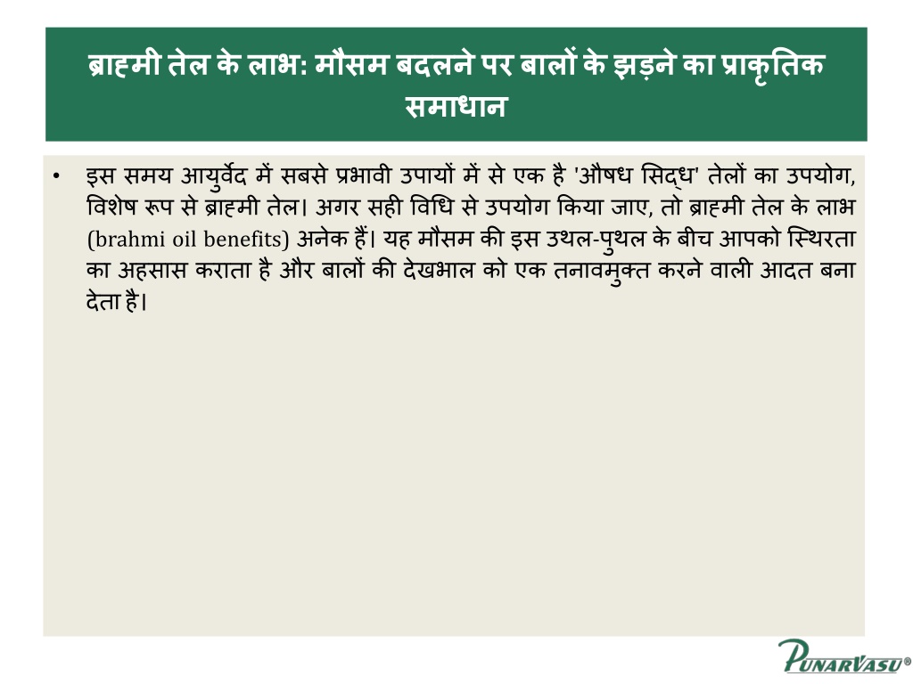 u0915u094du092fu093e u092cu0926u0932u0924u0947 u092eu094cu0938u092e u092eu0947u0902 u0906u092au0915u0947 u092cu093eu0932 u091du0921u093c u0930u0939u0947 u0939u0948u0902? u091cu093eu0928u093fu090f u0915u0948u0938u0947 u092au0941u0928u0930u094du0935u0938u0941 u0915u093e u092cu094du0930u093eu0939u094du092eu0940 u0924u0947u0932 u0938u094du0915u0948u0932u094du092a u0915u094b u092au094bu0937u0923 u0914u0930 u092eu0928 u0915u094b u0936u093eu0902u0924u093f u0926u0947u0915u0930 u0939u0947u092fu0930 u092bu0949u0932 u0915u094b u092au094du0930u093eu0915u0943u0924u093fu0915 u0930u0942u092a u0938u0947 u0930u094bu0915u0924u093e u0939u0948u0964<br>https://thepunarvasu.com/blogs/news/brahmi-oil-benefits-for-managing-seasonal-hair-fall-naturally<br>