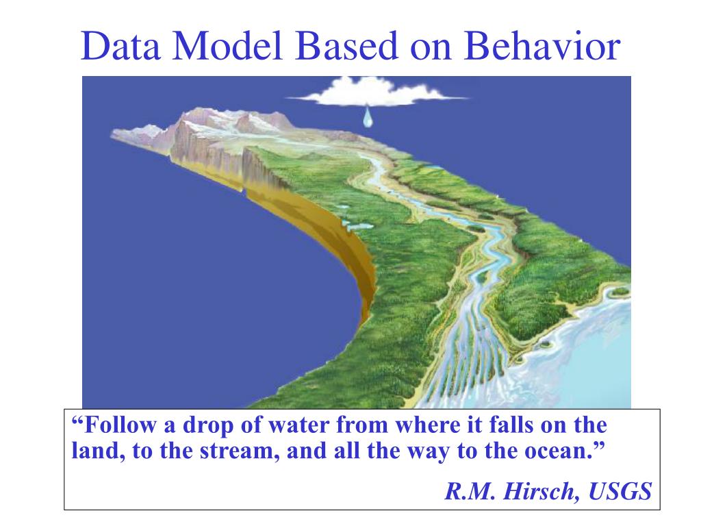 Data Model Based on Behavior “Follow a drop of water from where it falls on the land, to the stream, and all the way to the ocean.” R.M. Hirsch, USGS