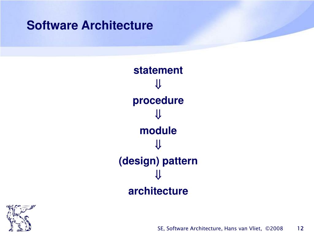 Software Architecture statement procedure module (design) pattern architecture SE, Software Architecture, Hans van Vliet, ©2008