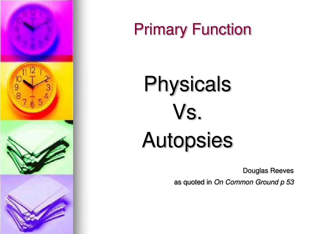 Primary Function Physicals Vs. Autopsies Douglas Reeves as quoted in On Common Ground p 53