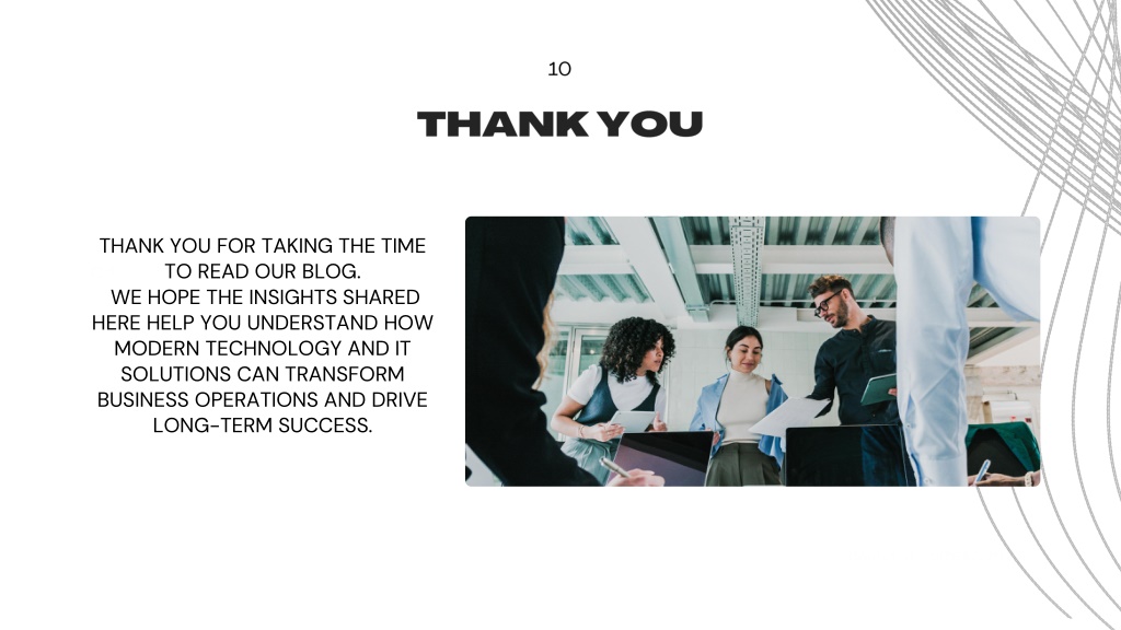 10 THANK YOU THANK YOU FOR TAKING THE TIME TO READ OUR BLOG. WE HOPE THE INSIGHTS SHARED HERE HELP YOU UNDERSTAND HOW MODERN TECHNOLOGY AND IT SOLUTIONS CAN TRANSFORM BUSINESS OPERATIONS AND DRIVE LONG-TERM SUCCESS. 01 dautomit@gmail.com