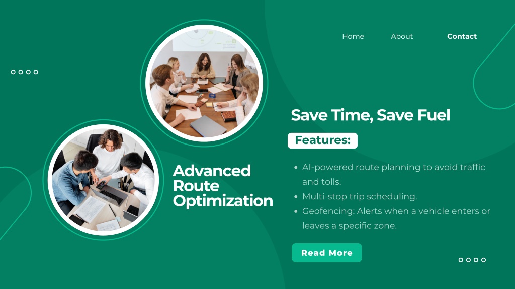 5. Home About Contact Save Time, Save Fuel Features: Advanced Route Optimization AI-powered route planning to avoid traffic and tolls. Multi-stop trip scheduling. Geofencing: Alerts when a vehicle enters or leaves a specific zone. Read More