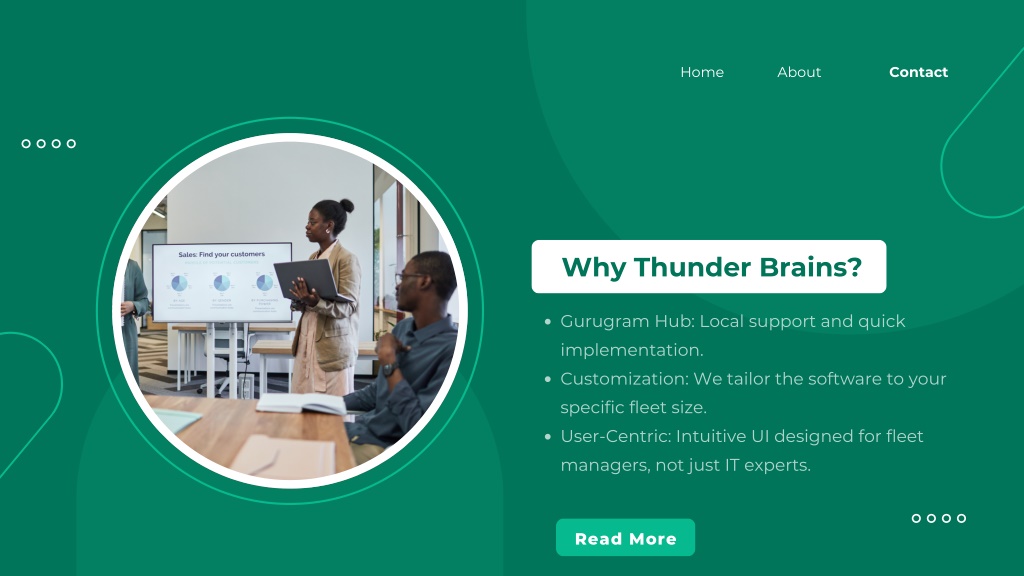 7. Home About Contact Why Thunder Brains? Gurugram Hub: Local support and quick implementation. Customization: We tailor the software to your specific fleet size. User-Centric: Intuitive UI designed for fleet managers, not just IT experts. Read More