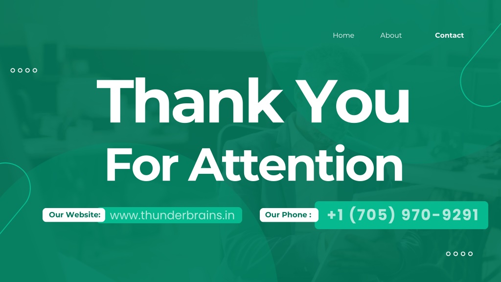 8. Home About Contact Thank You For Attention +1 (705) 970-9291 www.thunderbrains.in Our Website: Our Phone :