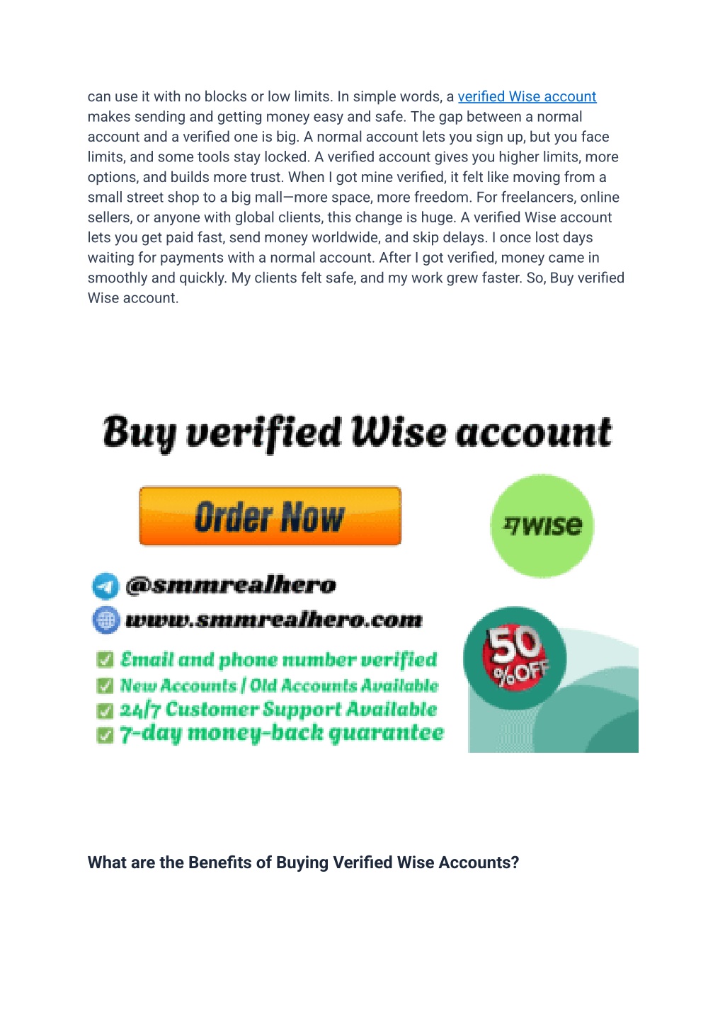 The best site to Buy Verified Wise Accounts in 2025<br>Contact US 24 Hours<br>ud83dudcf1 Telegram: @smmrealhero<br>ud83dudcde WhatsApp: 1 (603) 884-1129<br>https://smmrealhero.com/product/buy-verified-wise-accounts/<br>#wise #wisdom #love #wisewords #quotes #life #motivation #wordsofwisdom #quote #knowledge<br>#thoughts #god #positivevibes #instadaily #smart #follow #inspirationalquotes #rich #inspire #billionaire<br>#motivational #writer #grateful #photography #poetry #fashion #think #blogger #writerscommunity #buddha