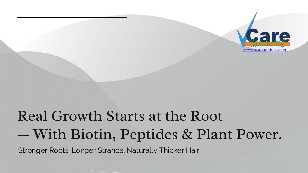 www.vcareproducts.com Real Growth Starts at the Root — With Biotin, Peptides & Plant Power. Stronger Roots. Longer Strands. Naturally Thicker Hair.