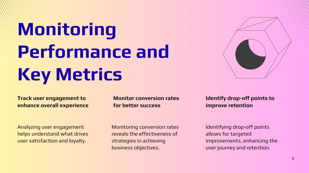 Monitoring Performance and Key Metrics Track user engagement to enhance overall experience Monitor conversion rates for better success Identify drop-off points to improve retention Analyzing user engagement helps understand what drives user satisfaction and loyalty. Monitoring conversion rates reveals the effectiveness of strategies in achieving business objectives. Identifying drop-off points allows for targeted improvements, enhancing the user journey and retention. 3