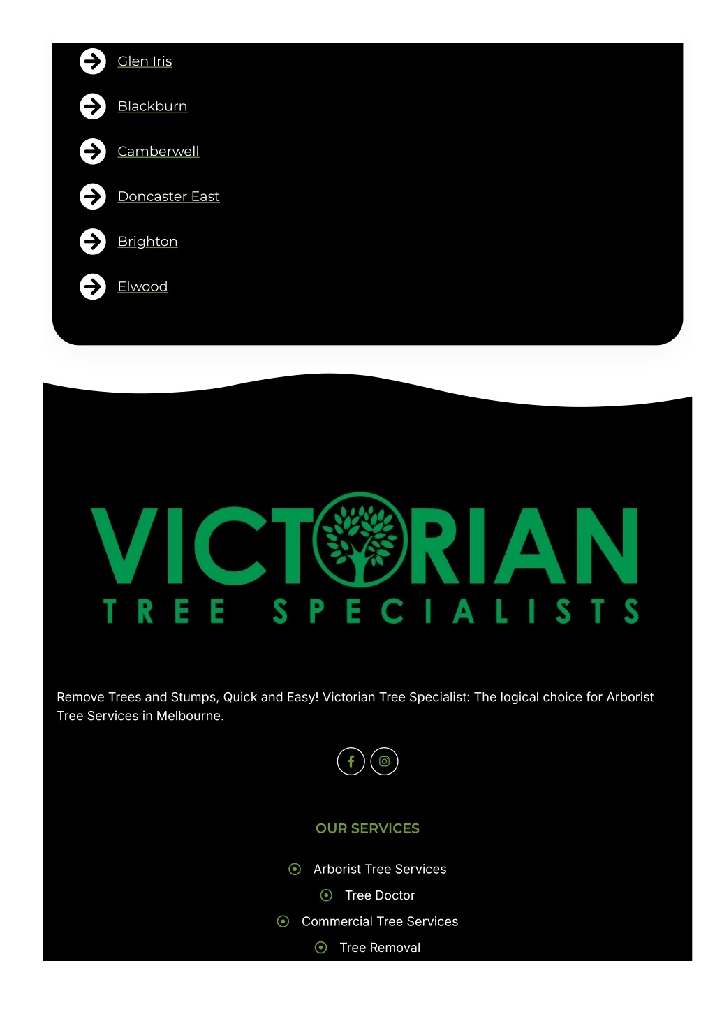 Glen Iris Blackburn Camberwell Doncaster East Brighton Elwood RemoveTreesandStumps, QuickandEasy! VictorianTreeSpecialist: ThelogicalchoiceforArborist TreeServicesinMelbourne. OUR SERVICES ArboristTreeServices TreeDoctor CommercialTreeServices TreeRemoval