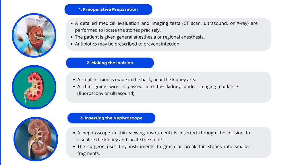 TARGET AUDIENCE 1. Preoperative Preparation A detailed medical evaluation and imaging tests (CT scan, ultrasound, or X-ray) are performed to locate the stones precisely. The patient is given general anesthesia or regional anesthesia. Antibiotics may be prescribed to prevent infection. By targeting these diverse audience segments, marketing agency ensures a customized and approach that aligns with the specific needs and goals of each client. 2. Making the Incision our impactful A small incision is made in the back, near the kidney area. A thin guide wire is passed into the kidney under imaging guidance (fluoroscopy or ultrasound). 3. Inserting the Nephroscope A nephroscope (a thin viewing instrument) is inserted through the incision to visualize the kidney and locate the stone. The surgeon uses tiny instruments to grasp or break the stones into smaller fragments. Thynk Unlimited