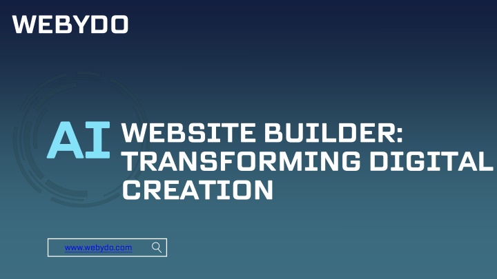 WEBYDO AI WEBSITE BUILDER: TRANSFORMING DIGITAL CREATION • AI website builders automate design decisions. • Smart templates adapt to brand identity. • Faster production with reduced manual effort. www.webydo.com