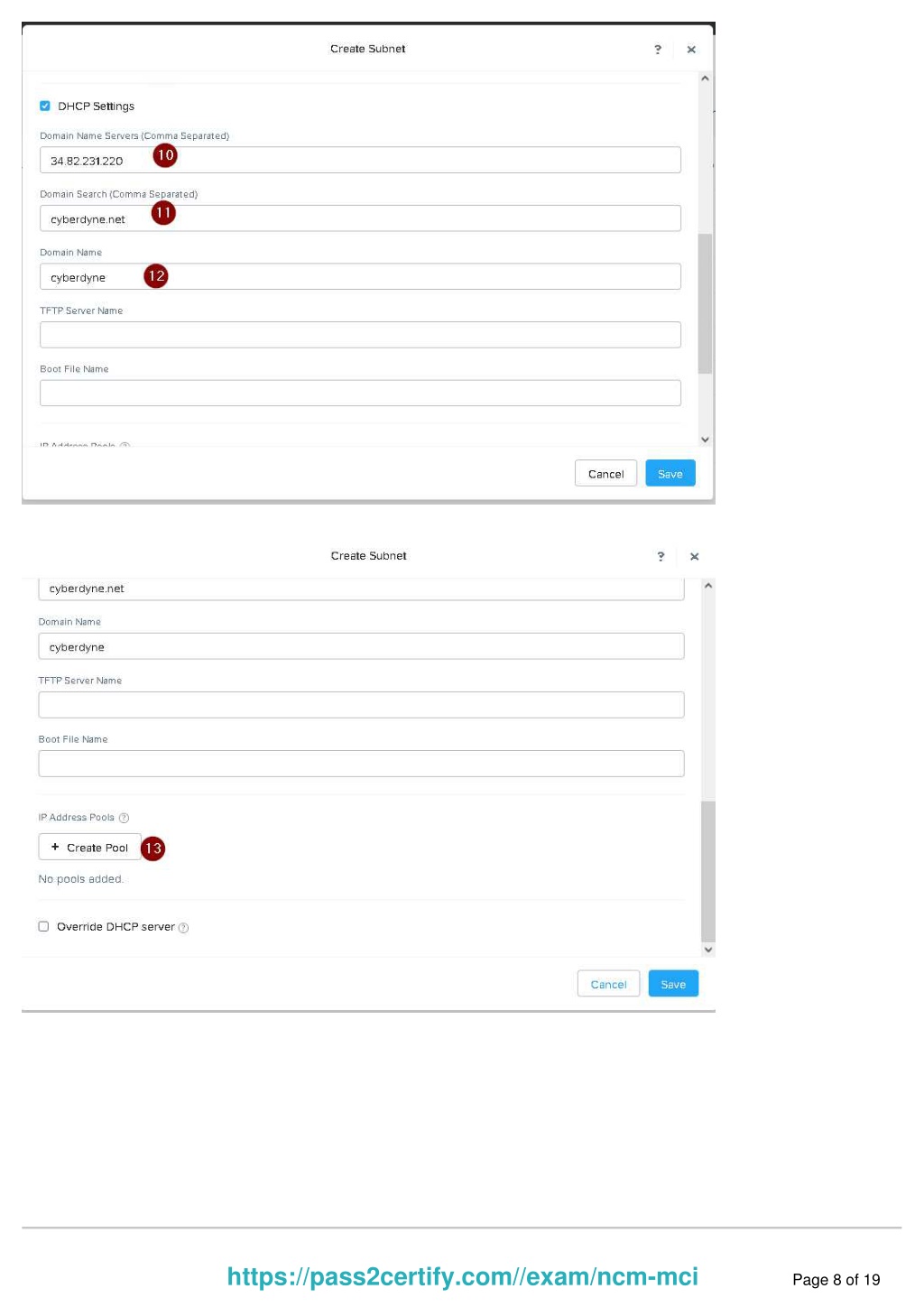 DHCP Server IP: 192.168.0.2 Configure the cluster to meet the requirements for the new workload if new objects are required, start the name with 667. A: See the Explanation for step by step solution Answer: A Explanation: To configure the cluster to meet the requirements for the new workload, you need to do the following steps: Create a new VLAN with ID 667 on the cluster. You can do this by logging in to Prism Element and going to Network Configuration > VLANs > Create VLAN. Enter 667 as the VLAN ID and a name for the VLAN, such as 667_VLAN. Create a new network segment with the network details provided. You can do this by logging in to Prism Central and going to Network > Network Segments > Create Network Segment. Enter a name for the network segment, such as 667_Network_Segment, and select 667_VLAN as the VLAN. Enter 192.168.0.0 as the Network Address and 255.255.255.0 as the Subnet Mask. Enter 192.168.0.1 as the Default Gateway and 34.82.231.220 as the DNS Server. Enter cyberdyne.net as the Domain Name. Create a new IP pool with the IP range provided. You can do this by logging in to Prism Central and going to Network > IP Pools > Create IP Pool. Enter a name for the IP pool, such as 667_IP_Pool, and select 667_Network_Segment as the Network Segment. Enter 192.168.9.100 as the Starting IP Address and 192.168.9.200 as the Ending IP Address. Configure the DHCP server with the IP address provided. You can do this by logging in to Prism Central and going to Network > DHCP Servers > Create DHCP Server. Enter a name for the DHCP server, such as 667_DHCP_Server, and select 667_Network_Segment as the Network Segment. Enter 192.168.0.2 as the IP Address and select 667_IP_Pool as the IP Pool. https://pass2certify.com//exam/ncm-mci Page 7 of 19