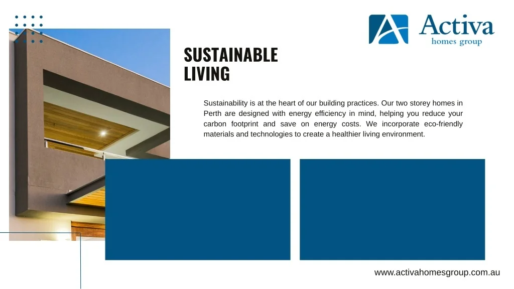 About Service Team Contact SUSTAINABLE LIVING Sustainability is at the heart of our building practices. Our two storey homes in Perth are designed with energy efficiency in mind, helping you reduce your carbon footprint and save on energy costs. We incorporate eco-friendly materials and technologies to create a healthier living environment. www.activahomesgroup.com.au