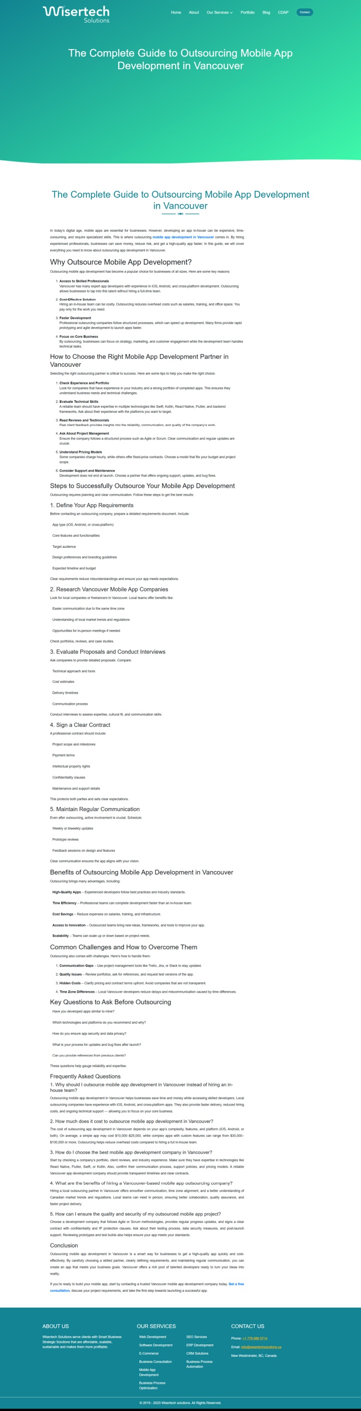 Outsourcing mobile app development in Vancouver helps businesses build high-quality iOS and Android apps faster and cost-effectively. Learn how to choose the right development partner, reduce costs, and scale your app with expert Vancouver app developers.