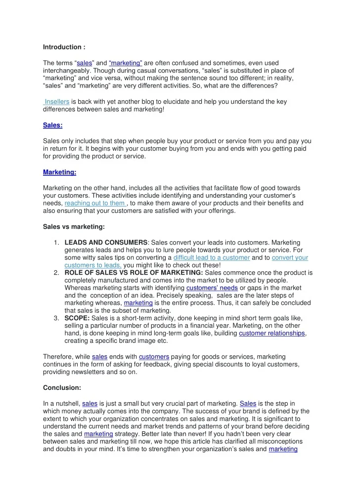 The terms u201csalesu201d and u201cmarketingu201d are often confused and sometimes, even used interchangeably. Though during casual conversations, u201csalesu201d is substituted in place of u201cmarketingu201d and vice versa, without making the sentence sound too different; in reality, u201csalesu201d and u201cmarketingu201d are very different activities. So, what are the differences?
