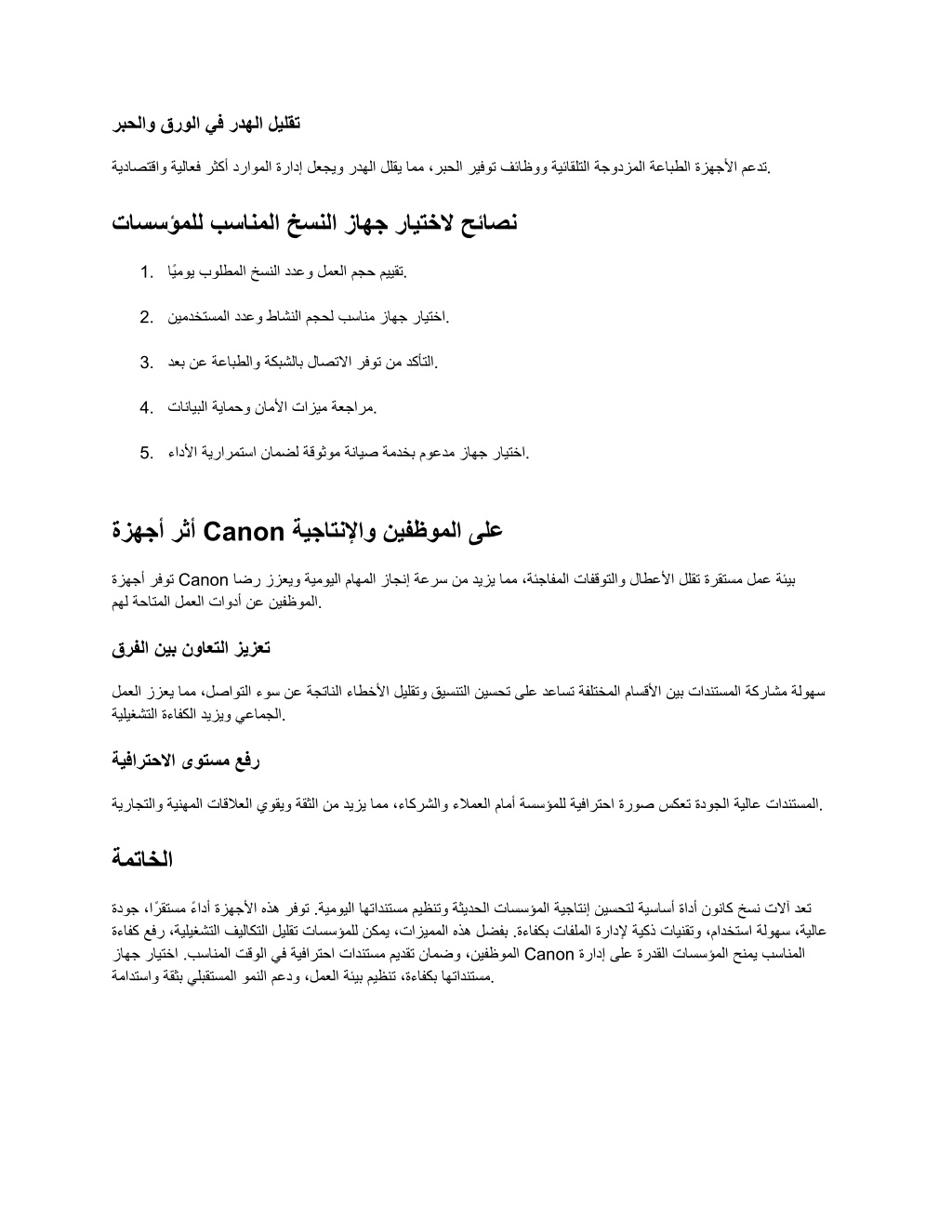رﺑﺣﻟاو قروﻟا ردﮭﻟا ﻲﻓ لﯾﻠﻘﺗ ،رﺑﺣﻟا ﺎﻣﻣ لﻠﻘﯾ ردﮭﻟا لﻌﺟﯾو ةرادإ دراوﻣﻟا رﺛﻛأ ﺔﯾﻟﺎﻌﻓ ﺔﯾدﺎﺻﺗﻗاو رﯾﻓوﺗ فﺋﺎظوو ﺔﯾﺋﺎﻘﻠﺗﻟا ﺔﺟودزﻣﻟا ﺔﻋﺎﺑطﻟا ةزﮭﺟﻷا مﻋدﺗ . تﺎﺳﺳؤﻣﻠﻟ بﺳﺎﻧﻣﻟا ﺦﺳﻧﻟا زﺎﮭﺟ رﺎﯾﺗﺧﻻ ﺢﺋﺎﺻﻧ 1. ﺎًﯾﻣوﯾ نﯾﻣدﺧﺗﺳﻣﻟا نﻋ دﻌﺑ تﺎﻧﺎﯾﺑﻟا ءادﻷا بوﻠطﻣﻟا ﺦﺳﻧﻟا ددﻋو لﻣﻌﻟا مﺟﺣ مﯾﯾﻘﺗ . 2. ددﻋو طﺎﺷﻧﻟا مﺟﺣﻟ بﺳﺎﻧﻣ زﺎﮭﺟ رﺎﯾﺗﺧا . 3. ﺔﻋﺎﺑطﻟاو ﺔﻛﺑﺷﻟﺎﺑ لﺎﺻﺗﻻا دﻛﺄﺗﻟا نﻣ رﻓوﺗ . 4. ﺔﯾﺎﻣﺣو نﺎﻣﻷا تازﯾﻣ ﺔﻌﺟارﻣ . 5. ﺔﯾرارﻣﺗﺳا نﺎﻣﺿﻟ ﺔﻗوﺛوﻣ ﺔﻧﺎﯾﺻ ﺔﻣدﺧﺑ موﻋدﻣ زﺎﮭﺟ رﺎﯾﺗﺧا . ةزﮭﺟأ رﺛأ Canon ﺔﯾﺟﺎﺗﻧﻹاو نﯾﻔظوﻣﻟا ﻰﻠﻋ رﻓوﺗ ﺔﺣﺎﺗﻣﻟا مﮭﻟ ةزﮭﺟأ Canon لﻣﻌﻟا ،ﺔﺋﺟﺎﻔﻣﻟا ﺎﻣﻣ دﯾزﯾ نﻣ ﺔﻋرﺳ زﺎﺟﻧإ مﺎﮭﻣﻟا ﺔﯾﻣوﯾﻟا ززﻌﯾو ﺎﺿر نﯾﻔظوﻣﻟا نﻋ تاودأ . تﺎﻔﻗوﺗﻟاو لﺎطﻋﻷا ةرﻘﺗﺳﻣ لﻠﻘﺗ لﻣﻋ ﺔﺋﯾﺑ نوﺎﻌﺗﻟا نﯾﺑ قرﻔﻟا زﯾزﻌﺗ تادﻧﺗﺳﻣﻟا نﯾﺑ مﺎﺳﻗﻷا ﺔﻔﻠﺗﺧﻣﻟا دﻋﺎﺳﺗ ﻰﻠﻋ نﯾﺳﺣﺗ قﯾﺳﻧﺗﻟا لﯾﻠﻘﺗو ءﺎطﺧﻷا ﺔﺟﺗﺎﻧﻟا نﻋ ءوﺳ ،لﺻاوﺗﻟا ﺎﻣﻣ ززﻌﯾ لﻣﻌﻟا ﻲﻋﺎﻣﺟﻟا دﯾزﯾو ةءﺎﻔﻛﻟا ﺔﯾﻠﯾﻐﺷﺗﻟا . ﺔﻛرﺎﺷﻣ ﺔﻟوﮭﺳ ﺔﯾﻓارﺗﺣﻻا ىوﺗﺳﻣ ﻊﻓر تادﻧﺗﺳﻣﻟا ﺔﯾﻟﺎﻋ ةدوﺟﻟا سﻛﻌﺗ ةروﺻ ﺔﯾﻓارﺗﺣا ﺔﺳﺳؤﻣﻠﻟ مﺎﻣأ ءﻼﻣﻌﻟا ،ءﺎﻛرﺷﻟاو ﺎﻣﻣ دﯾزﯾ نﻣ ﺔﻘﺛﻟا يوﻘﯾو تﺎﻗﻼﻌﻟا ﺔﯾﻧﮭﻣﻟا ﺔﯾرﺎﺟﺗﻟاو . ﺔﻣﺗﺎﺧﻟا ةدوﺟ نوﻧﺎﻛ ةادأ تﺎﯾﻧﻘﺗو ﺔﯾﻛذ ةرادﻹ تﺎﻔﻠﻣﻟا .ةءﺎﻔﻛﺑ لﺿﻔﺑ هذھ ،تازﯾﻣﻣﻟا نﻛﻣﯾ تﺎﺳﺳؤﻣﻠﻟ لﯾﻠﻘﺗ فﯾﻟﺎﻛﺗﻟا ،ﺔﯾﻠﯾﻐﺷﺗﻟا ﻊﻓر ةءﺎﻔﻛ نﺎﻣﺿو مﯾدﻘﺗ تادﻧﺗﺳﻣ ﺔﯾﻓارﺗﺣا ﻲﻓ تﻗوﻟا .بﺳﺎﻧﻣﻟا رﺎﯾﺗﺧا زﺎﮭﺟ ،ةءﺎﻔﻛﺑ مﯾظﻧﺗ ﺔﺋﯾﺑ ،لﻣﻌﻟا مﻋدو وﻣﻧﻟا ﻲﻠﺑﻘﺗﺳﻣﻟا ﺔﻘﺛﺑ ﺔﻣادﺗﺳاو ،اًرﻘﺗﺳﻣ ةزﮭﺟﻷا ًءادأ هذھ رﻓوﺗ .ﺔﯾﻣوﯾﻟا ﺎﮭﺗادﻧﺗﺳﻣ مﯾظﻧﺗو ﺔﺛﯾدﺣﻟا تﺎﺳﺳؤﻣﻟا ﺔﯾﺟﺎﺗﻧإ نﯾﺳﺣﺗﻟ ﺔﯾﺳﺎﺳأ تﻻآ ﺔﻟوﮭﺳ بﺳﺎﻧﻣﻟا ﺢﻧﻣﯾ ﺦﺳﻧ دﻌﺗ ،ﺔﯾﻟﺎﻋ ،مادﺧﺗﺳا ،نﯾﻔظوﻣﻟا ﺎﮭﺗادﻧﺗﺳﻣ Canon ةرادإ ﻰﻠﻋ ةردﻘﻟا تﺎﺳﺳؤﻣﻟا .
