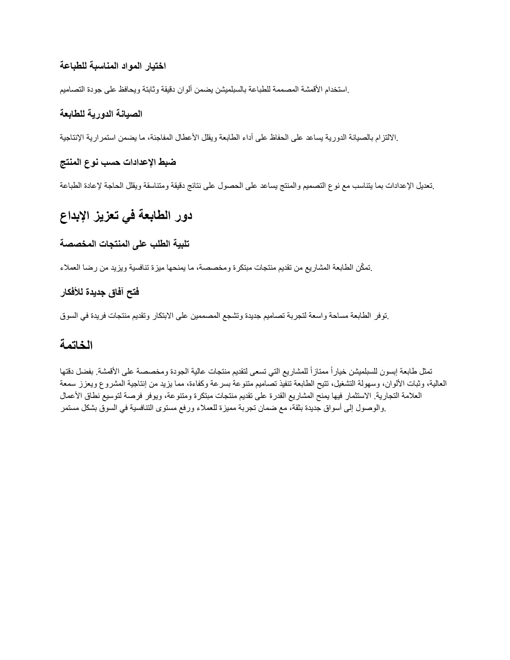 u062au0642u062fu0645 u0637u0627u0628u0639u0629 u0625u0628u0633u0648u0646 u0644u0644u0633u0628u0644u0645u064au0634u0646 u062du0644u0627u064b u0645u062bu0627u0644u064au0627u064b u0644u0644u0637u0628u0627u0639u0629 u0639u0644u0649 u0627u0644u0623u0642u0645u0634u0629 u0628u062fu0642u0629 u0639u0627u0644u064au0629 u0648u0623u0644u0648u0627u0646 u062bu0627u0628u062au0629 u0648u062cu0648u062fu0629 u0627u062du062au0631u0627u0641u064au0629. u062au062au064au062d u0627u0644u0637u0627u0628u0639u0629 u062au0646u0641u064au0630 u062au0635u0627u0645u064au0645 u0645u0628u062au0643u0631u0629 u0648u0645u062au0646u0648u0639u0629 u0628u0633u0631u0639u0629 u0648u0643u0641u0627u0621u0629u060c u0645u0639 u062au0642u0644u064au0644 u0627u0644u0647u062fu0631 u0648u0632u064au0627u062fu0629 u0627u0644u0625u0646u062au0627u062cu064au0629. u062au0633u062au062eu062fu0645 u0641u064a u0627u0644u0645u0644u0627u0628u0633u060c u0627u0644u062fu064au0643u0648u0631u060c u0648u0627u0644u0645u0648u0627u062f u0627u0644u062fu0639u0627u0626u064au0629u060c u0645u0645u0627 u064au0645u0646u062d u0627u0644u0645u0634u0627u0631u064au0639 u0645u064au0632u0629 u062au0646u0627u0641u0633u064au0629 u0648u064au0632u064au062f u0631u0636u0627 u0627u0644u0639u0645u0644u0627u0621. u0627u0644u0627u0633u062au062bu0645u0627u0631 u0641u064a u0647u0630u0647 u0627u0644u0637u0627u0628u0639u0629 u064au0636u0645u0646 u062au0642u062fu064au0645 u0645u0646u062au062cu0627u062a u0645u0628u062au0643u0631u0629 u0648u0645u062eu0635u0635u0629u060c u0648u064au062fu0639u0645 u062au0648u0633u0639 u0627u0644u0645u0634u0631u0648u0639 u0641u064a u0627u0644u0623u0633u0648u0627u0642 u0628u062bu0642u0629 u0648u0643u0641u0627u0621u0629 u0639u0627u0644u064au0629.