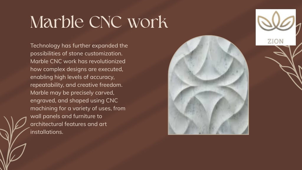 Marble CNC work Technology has further expanded the possibilities of stone customization. Marble CNC work has revolutionized how complex designs are executed, enabling high levels of accuracy, repeatability, and creative freedom. Marble may be precisely carved, engraved, and shaped using CNC machining for a variety of uses, from wall panels and furniture to architectural features and art installations.