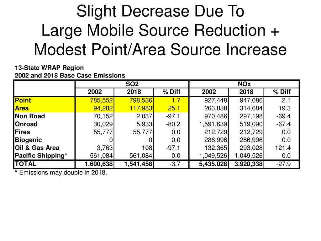 Slight Decrease Due ToLarge Mobile Source Reduction + Modest Point/Area Source Increase