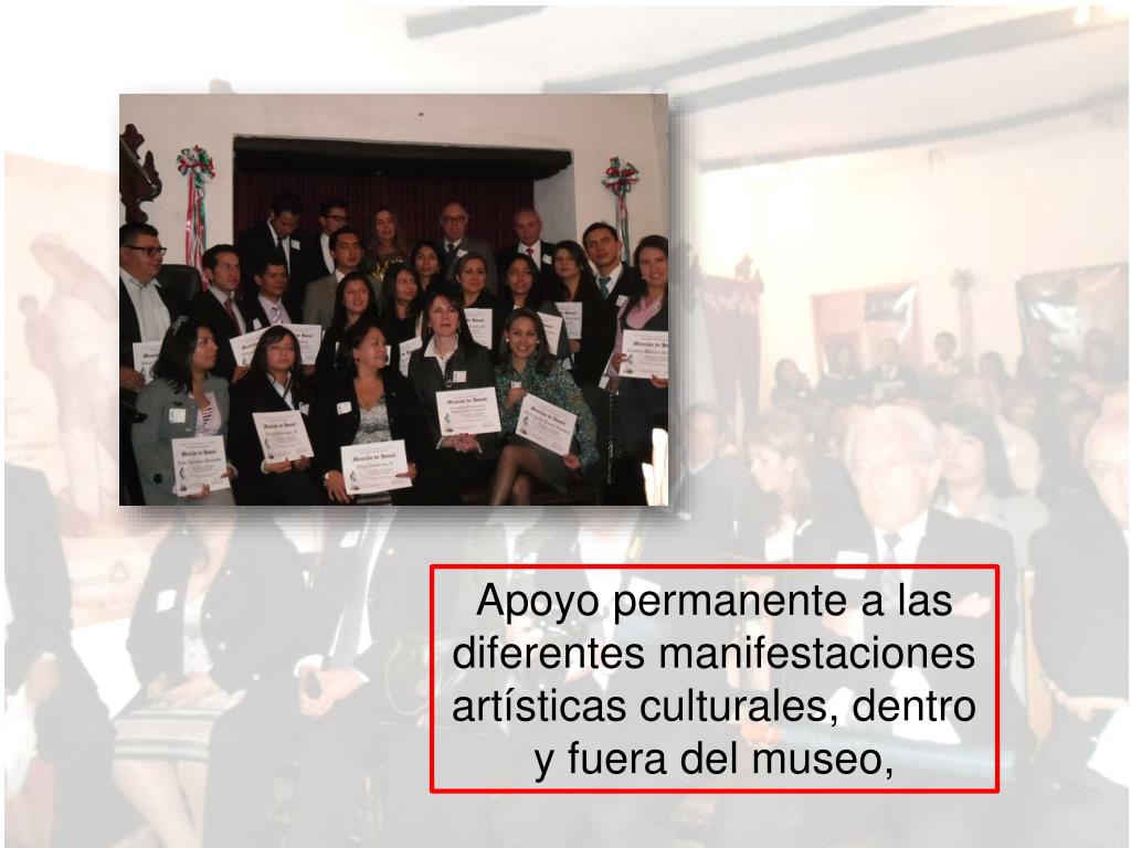 Apoyo permanente a las diferentes manifestaciones artísticas culturales, dentro y fuera del museo,