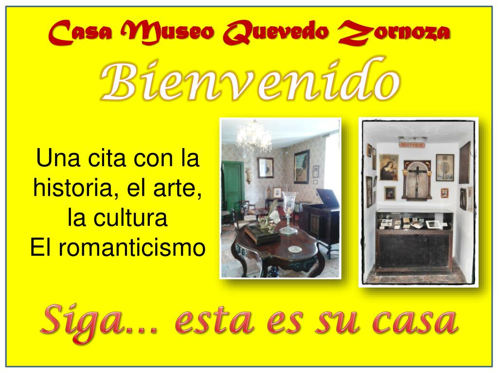 Casa Museo Quevedo Zornoza Bienvenido Una cita con la historia, el arte, la cultura El romanticismo Siga… esta es su casa