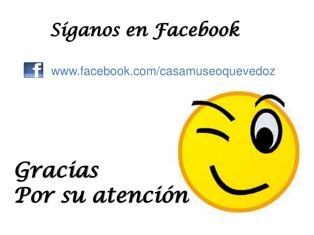 Síganos en Facebook Gracias Por su atención www.facebook.com/casamuseoquevedoz