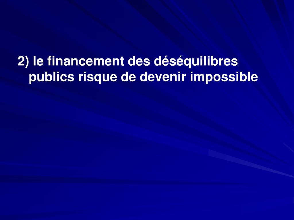 2) le financement des déséquilibres publics risque de devenir impossible