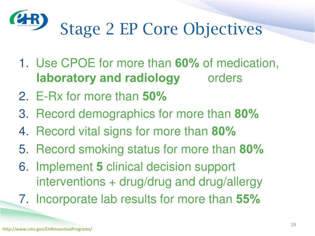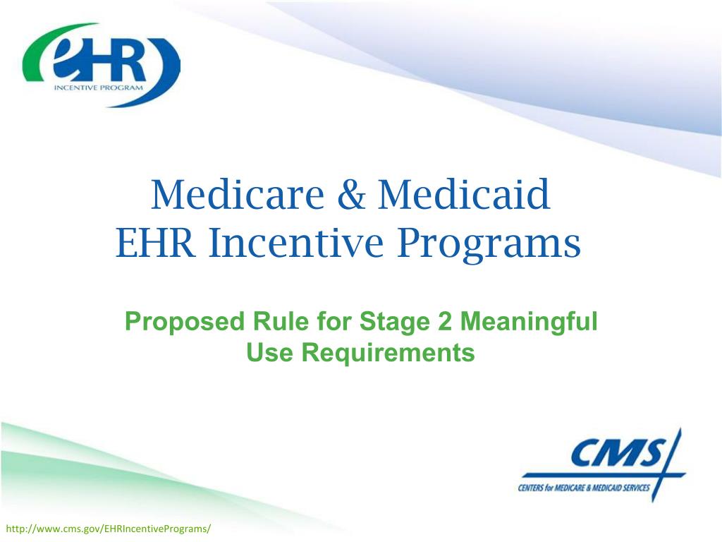Medicare & MedicaidEHR Incentive Programs Proposed Rule for Stage 2 Meaningful Use Requirements http://www.cms.gov/EHRIncentivePrograms/
