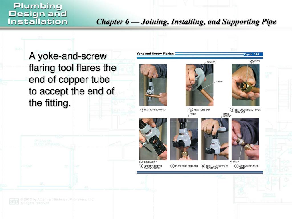 A yoke-and-screw flaring tool flares the end of copper tube to accept the end of the fitting.