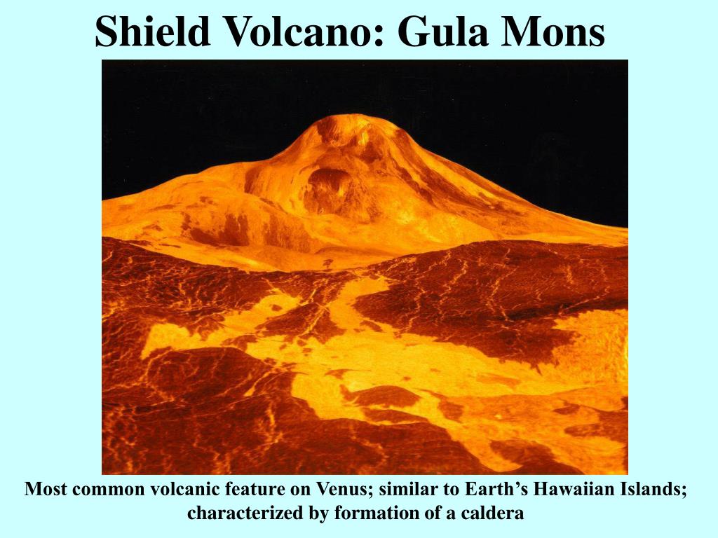 Shield Volcano: Gula Mons Most common volcanic feature on Venus; similar to Earth’s Hawaiian Islands; characterized by formation of a caldera