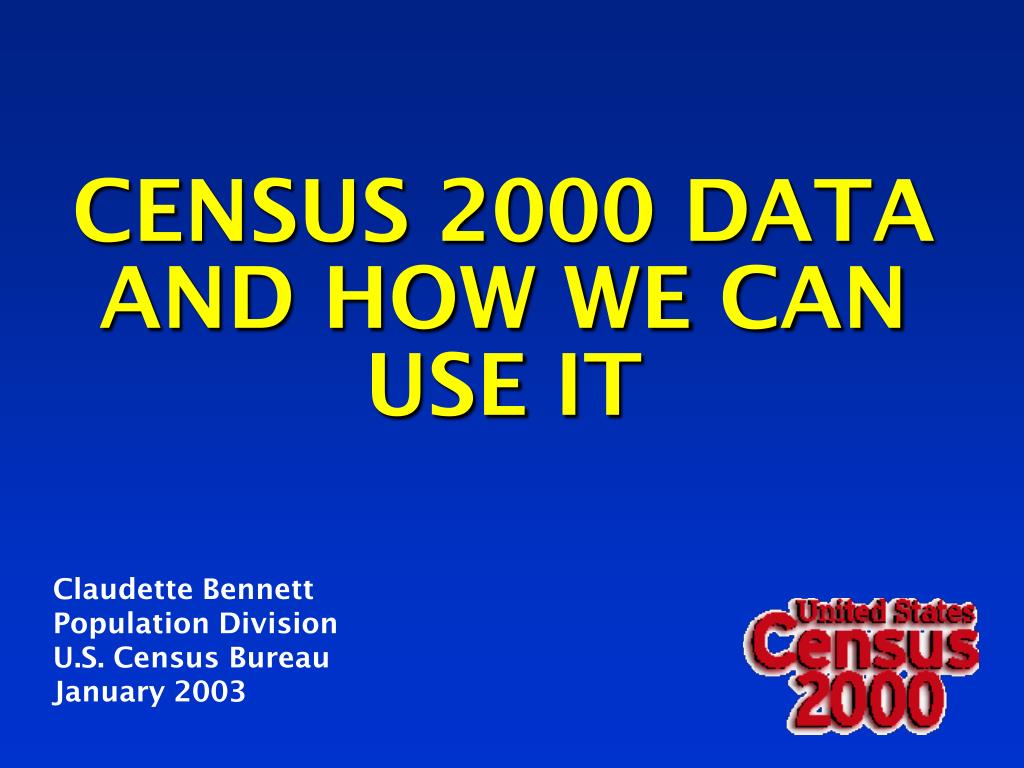 CENSUS 2000 DATA AND HOW WE CAN USE IT Claudette Bennett Population Division U.S. Census Bureau January 2003