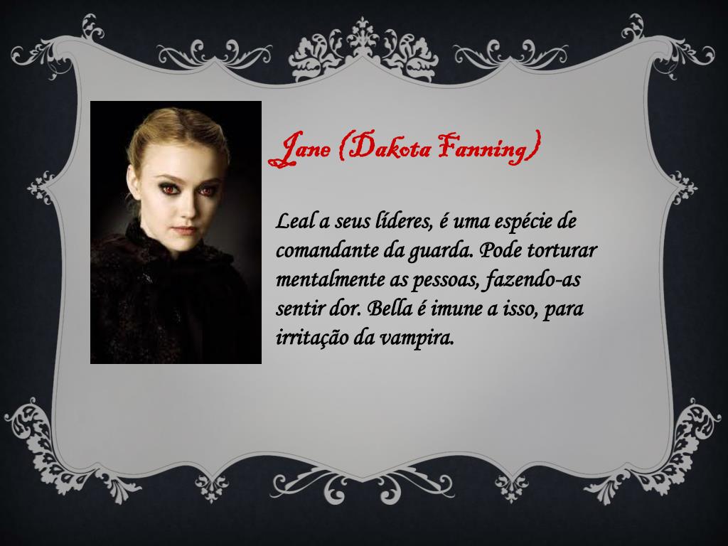 Jane (Dakota Fanning) Leal a seus líderes, é uma espécie de comandante da guarda. Pode torturar mentalmente as pessoas, fazendo-as sentir dor. Bella é imune a isso, para irritação da vampira.