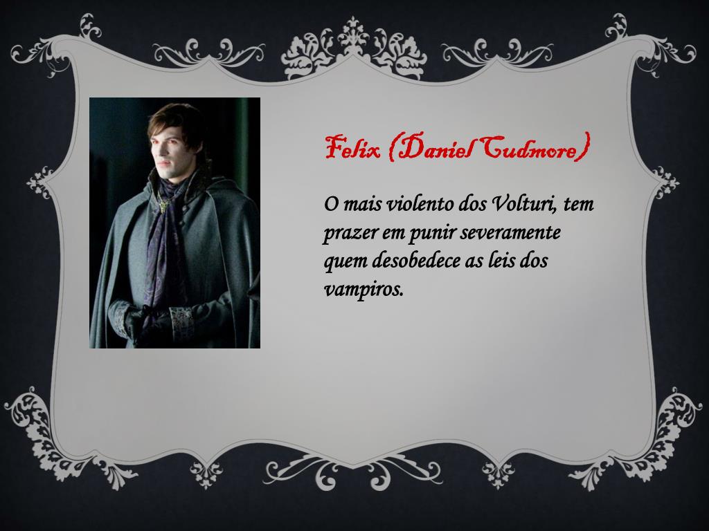 Felix (Daniel Cudmore) O mais violento dos Volturi, tem prazer em punir severamente quem desobedece as leis dos vampiros.