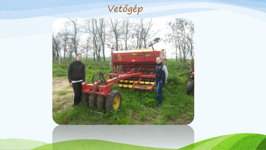 „Kezdetek”A föld művelése-vetése Első feladat a szántóföld megtisztítása, attól függően hogy a búza vetése előtt mi volt a földben. Pl.: napraforgó, repce Napraforgó esetén a napraforgó szárzúzása Ezután két sor tárcsázás (tárcsás-boronával) Műtrágya szórása Búza elvetése egy elmunkálós vetőgéppel történik, ekkor újra tárcsázza a földet, majd lehengerli melynek lényege hogy lezárja a földet.