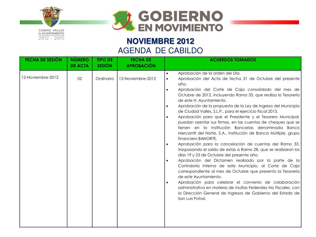 DIC IEMBRE 2012 AGENDA DE CABILDO
