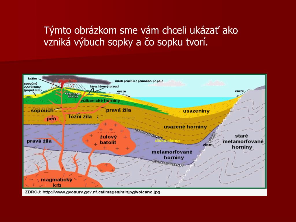Týmto obrázkom sme vám chceli ukázať ako vzniká výbuch sopky a čo sopku tvorí.