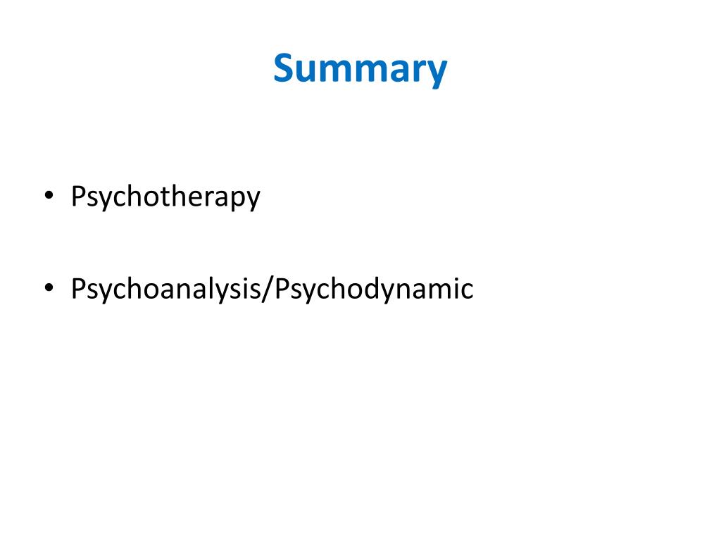 Summary • Psychotherapy • Psychoanalysis/Psychodynamic