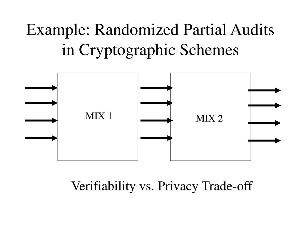 Example: Randomized Partial Audits in Cryptographic Schemes MIX 1 MIX 2 Verifiability vs. Privacy Trade-off