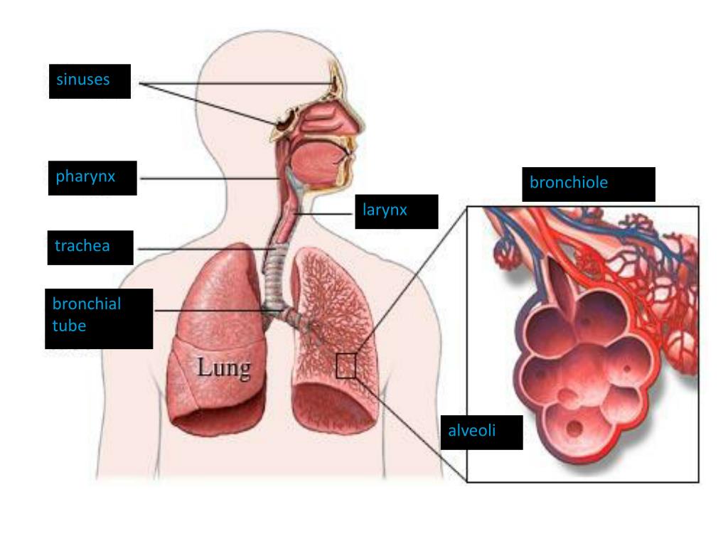 sinuses pharynx bronchiole larynx trachea bronchial tube alveoli