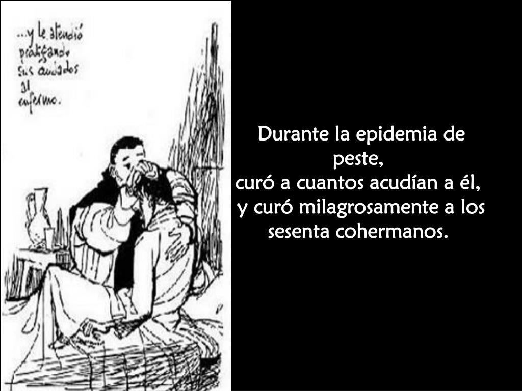 Durante la epidemia de peste, curó a cuantos acudían a él, y curó milagrosamente a los sesenta cohermanos.