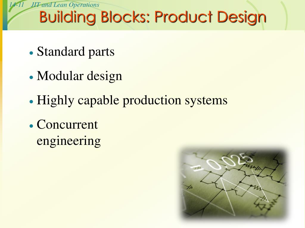 Building Blocks: Product Design • Standard parts • Modular design • Highly capable production systems • Concurrentengineering