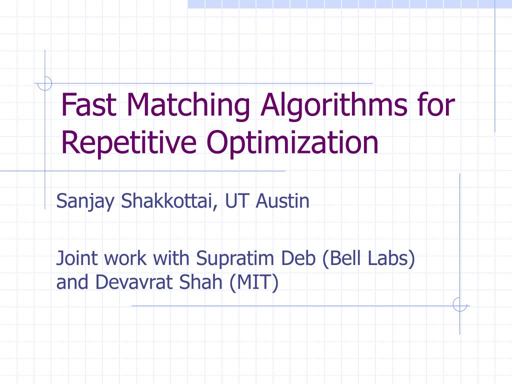 Fast Matching Algorithms for Repetitive Optimization Sanjay Shakkottai, UT Austin Joint work with Supratim Deb (Bell Labs) and Devavrat Shah (MIT)