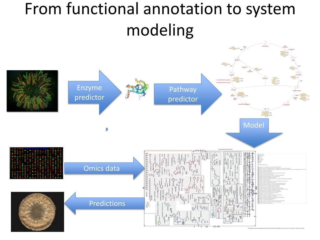 From functional annotation to system modeling Enzyme predictor Pathway predictor Model Omics data Predictions