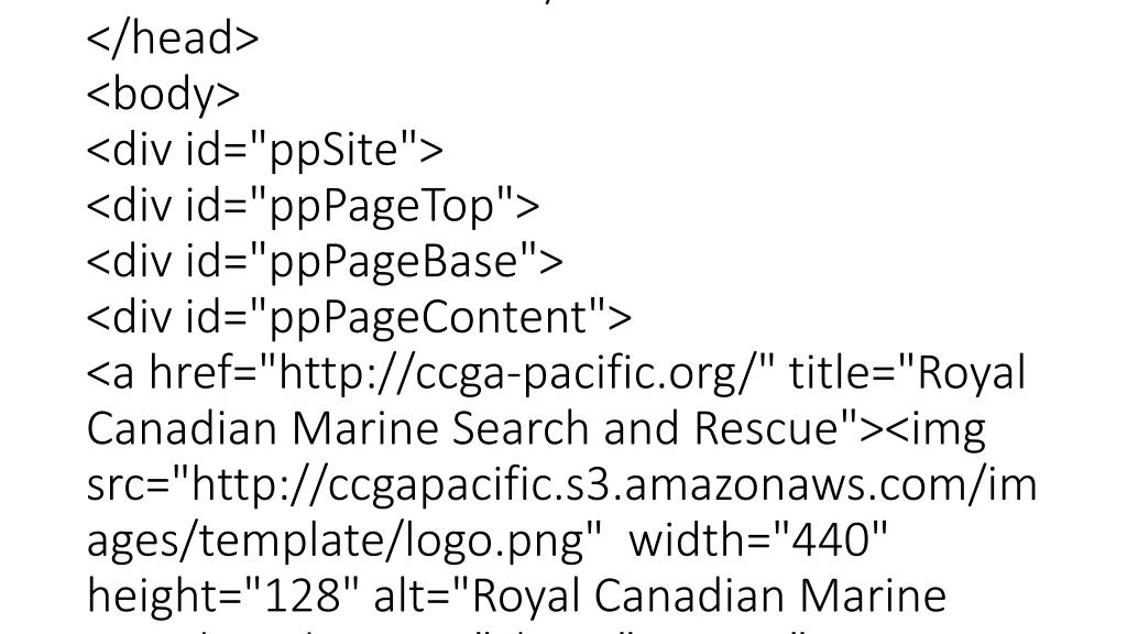 <?xml version="1.0" encoding="iso-8859-1"?> <!DOCTYPE html PUBLIC "-//W3C//DTD XHTML 1.0 Transitional//EN" "http://www.w3.org/TR/xhtml1/DTD/xhtml1-transitional.dtd"> <html xmlns="http://www.w3.org/1999/xhtml" xml:lang="en" lang="en"> <head profile="http://dublincore.org/documents/2008/08/04/dc-html"> <title>Royal Canadian Marine Search and Rescue (RCMSAR)</title> <meta name="og:title" content="Royal Canadian Marine Search and Rescue (RCMSAR)" /> <meta name="og:site_name" content="Royal Canadian Marine Search and Rescue" /> <meta name="revisit-after" content="7 days" /> <meta name="robots" content="index,follow,all" /> <meta http-equiv="language" content="en" /> <meta http-equiv="Content-type" content="text/html; charset=iso-8859-1" /> <meta name="copyright" content="Copyright © 2000-2014 Royal Canadian Marine Search and Rescue - code Copyright © 1997-2014 PawPrint.net" /> <meta name="author" content="PawPrint.net" /> <meta name="keywords" content="RCMSAR,Search and Rescue,Search and Rescue,Royal Canadian Marine,Life,Rescue,Rescue,SAR,Life,Search and Rescue,SAR,Royal Canadian Marine,Royal Canadian Marine,Royal Canadian Marine,Search and Rescue,Rescue,SAR,Life,Search,Search and Rescue" /> <meta name="description" content="RCMSAR Member and Information Portal" /> <meta name="og:description" content="RCMSAR Member and Information Portal" /> <meta name="og:type" content="website" /> <link rel="schema.dc" href="http://purl.org/dc/terms/" /> <link rel="schema.ex" href="http://example.org/terms/" /> <meta name="dc.Language" content="en" /> <meta name="dc.Creator" content="PawPrint.net" /> <meta name="dc.Title" lang="en" content="Royal Canadian Marine Search and Rescue (RCMSAR)" /> <meta name="dc.Subject" lang="en" content="RCMSAR,Life,Search,SAR,Rescue,SAR,Search and Rescue,Search and Rescue,Search,Search,Search and Rescue,Life,SAR,Search and Rescue,Search and Rescue,Royal Canadian Marine,Rescue,Search,Search,Search,Search,Rescue,Rescue,Search,Life,Search,Royal Canadian Marine,Search and Rescue,SAR" /> <meta name="dc.Description" lang="en" content="RCMSAR Member and Information Portal" /> <script type="text/javascript"> //<![CDATA[ var pageEndTime = 0, pageStartTime = new Date().getTime(); //]]> </script> <link rel="stylesheet" type="text/css" href="http://ccga-pacific.org/css/sitecss20140527122847.php" /> <script type="text/javascript" src="http://ccga-pacific.org/js/sitejs20140527122849.php"></script> <!--[if gt IE 6]><script type="text/javascript" src="http://ccga-pacific.org/js/excanvas.p.js"></script> <![endif]--> <meta name="viewport" content="width=800" /> </head> <body> <div id="ppSite"> <div id="ppPageTop"> <div id="ppPageBase"> <div id="ppPageContent"> <a href="http://ccga-pacific.org/" title="Royal Canadian Marine Search and Rescue"><img src="http://ccgapacific.s3.amazonaws.com/images/template/logo.png" width="440" height="128" alt="Royal Canadian Marine Search and Rescue"class="noPrint" id="ccgaLogo" /></a><div id="topNav" class="guestUser noPrint"><div id="topToolItems" class="noPrint"><a href="http://ccga-pacific.org/search/" title="Search" class="xdeSearchBtn" onclick="return xdeSearchDialog('','Search','');">search</a></div> <div id="topTools"><a href="http://ccga-pacific.org/xde/login.php" title="Member login or click here to sign-up." onclick="return ajaxLoginDialog('Login/Signup');">Login/Signup</a></div> <a href="http://ccga-pacific.org/">Home</a><a href="http://ccga-pacific.org/boating-safety">Boating Safety</a><a href="http://ccga-pacific.org/about.php">Search & Rescue</a><a href="http://ccga-pacific.org/help.php">Help Save Lives</a></div> <div id="ppBannerImage" class="ibSlideshow noPrint"> <div class="ibSlide"><img src="http://ccgapacific.s3.amazonaws.com/images/sarresources/t_50cfaf080e5ef.jpg" alt="Station 37 Sooke" /> </div> <div class="ibSlide"><img src="http://ccgapacific.s3.amazonaws.com/images/sarresources/t_50cfaf5c5f565.jpg" alt="Station 50 " /> </div> <div class="ibSlide"><img src="http://ccgapacific.s3.amazonaws.com/images/sarresources/t_50cfaf9076002.jpg" alt="Brewin" /> </div> <div class="ibSlide"><img src="http://ccgapacific.s3.amazonaws.com/images/sarresources/t_50cfaec37a6df.jpg" alt="Stationt 14 Gibsons" /> </div> <div class="ibSlide"><img src="http://ccgapacific.s3.amazonaws.com/images/sarresources/t_50cfaede03901.jpg" alt="Station 20 Salish Seas" /> </div> </div> <div id="ppBanner" class="noPrint"><div class="roundShadow noPrint noMobile"></div> </div> <div id="mainNav" class="noPrint"><a href="http://ccga-pacific.org/about.php">About</a><a href="http://ccga-pacific.org/faq/">FAQ</a><a href="http://ccga-pacific.org/news/">News</a><a href="http://ccga-pacific.org/gallery/">Photos</a></div> <div id="ppContentArea"><div class="roundShadow noPrint noMobile"></div> <div id="ppMainContent"><div class="pageitem"> <h1>Volunteer Marine Search and Rescue</h1> As an integral part of the Canadian Search and Rescue (SAR) system, the mission of <strong> Royal Canadian Marine Search and Rescue</strong> (RCM-SAR) is to provide a volunteer marine rescue service and to promote public boating safety on the lakes, the inland straits and waters, and the Pacific Ocean coast of British Columbia in Canada.