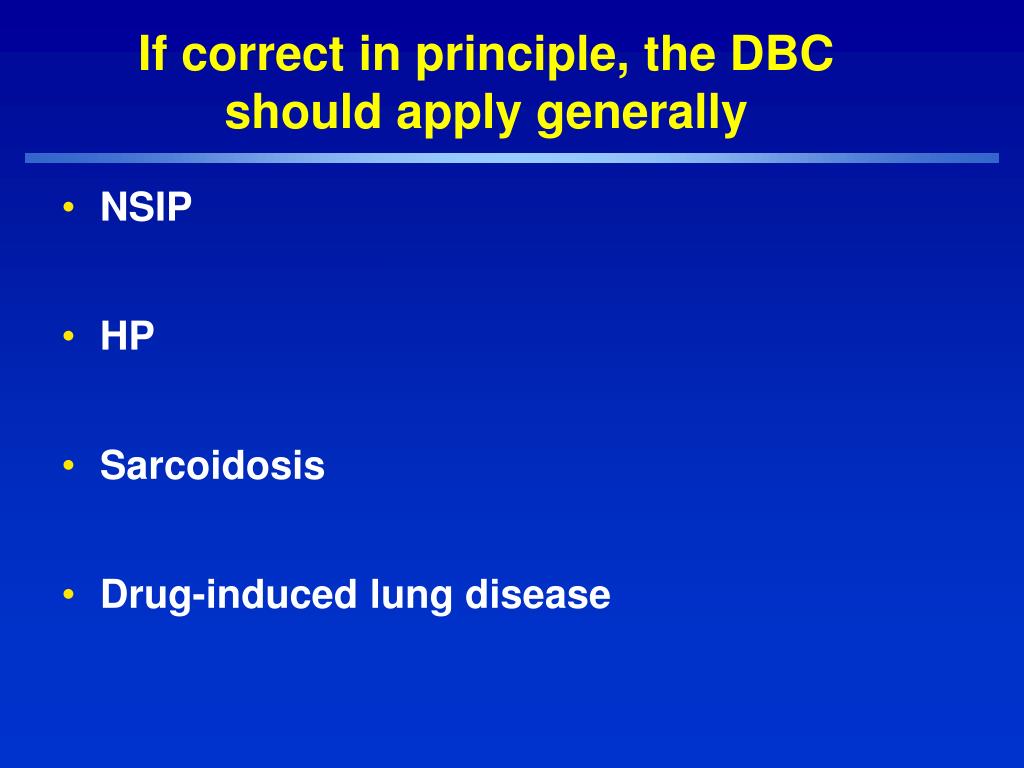 If correct in principle, the DBC should apply generally • NSIP • HP • Sarcoidosis • Drug-induced lung disease