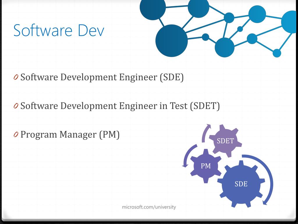 Software Dev • Software Development Engineer (SDE) • Software Development Engineer in Test (SDET) • Program Manager (PM) microsoft.com/university