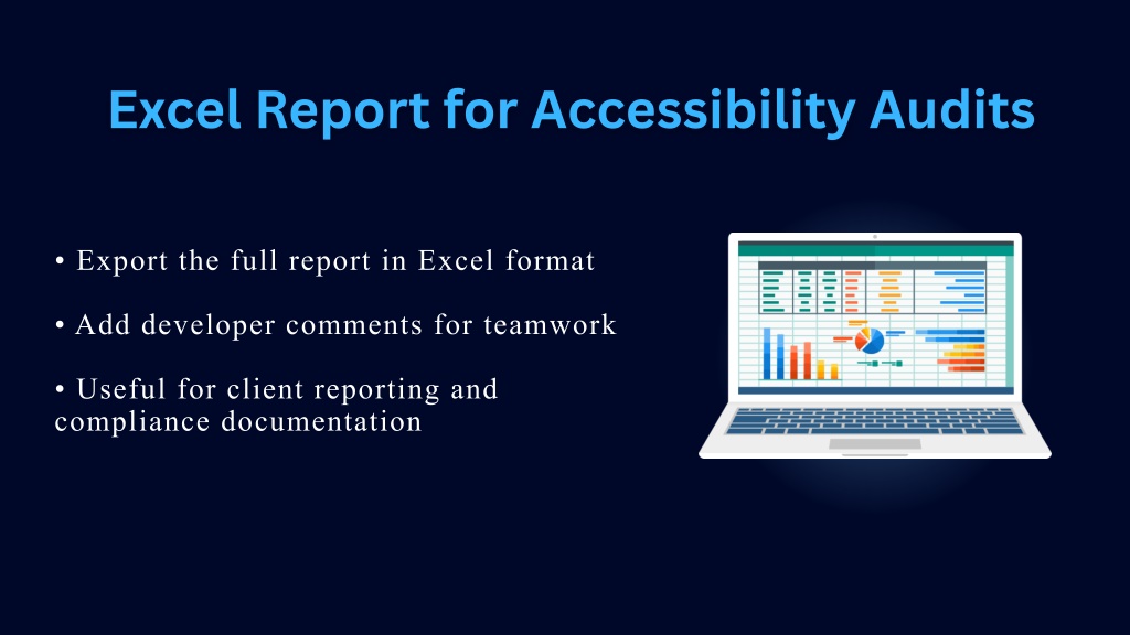 6. Excel Report for Accessibility Audits • Export the full report in Excel format • Add developer comments for teamwork • Useful for client reporting and compliance documentation