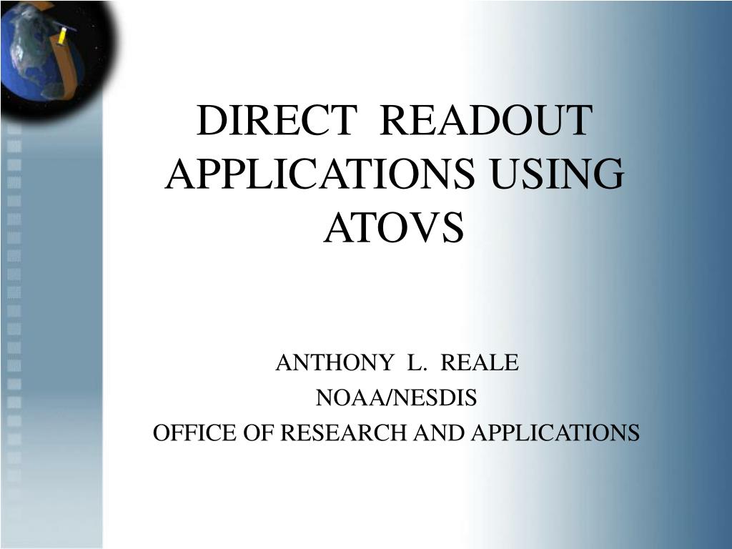 DIRECT READOUT APPLICATIONS USING ATOVS ANTHONY L. REALE NOAA/NESDIS OFFICE OF RESEARCH AND APPLICATIONS