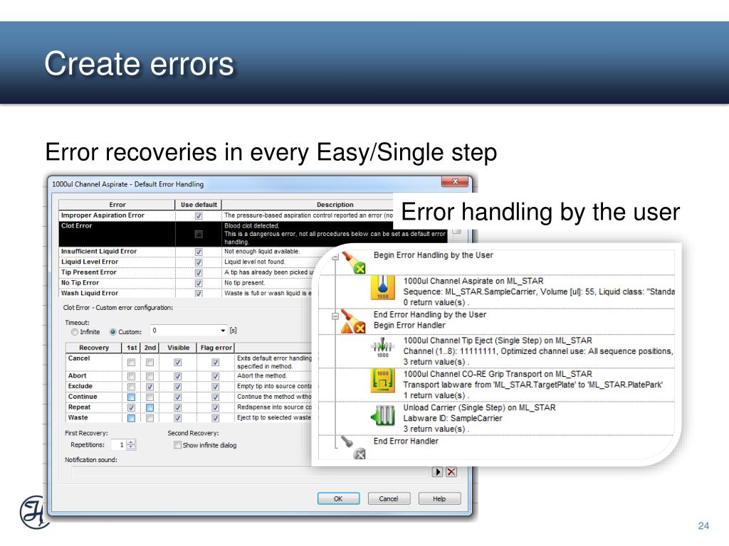 Create errors Error recoveries in everyEasy/Single step Error handlingbytheuser